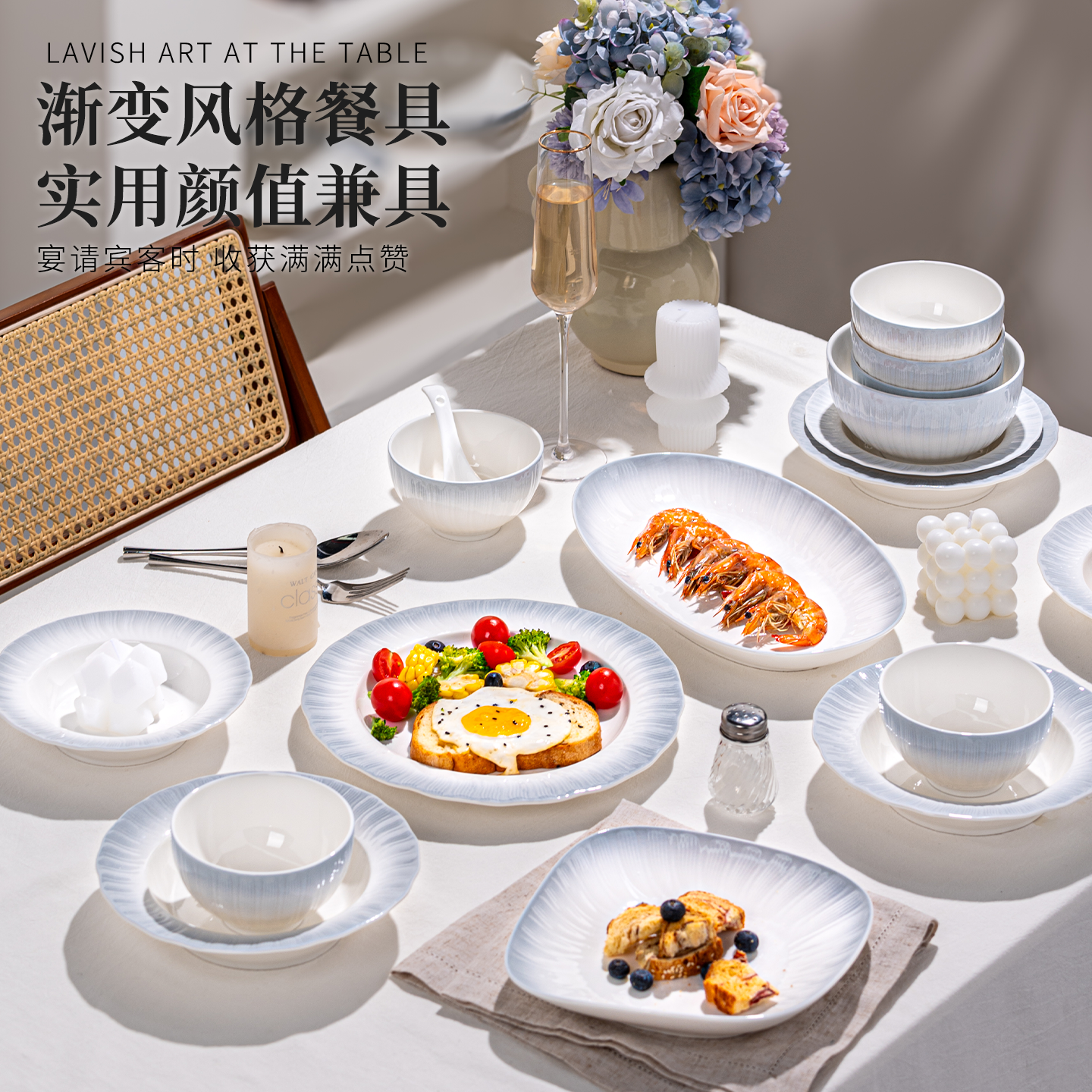 高级感碗碟套装家用2025新款简约碗盘乔迁碗筷陶瓷釉下彩餐具盘子