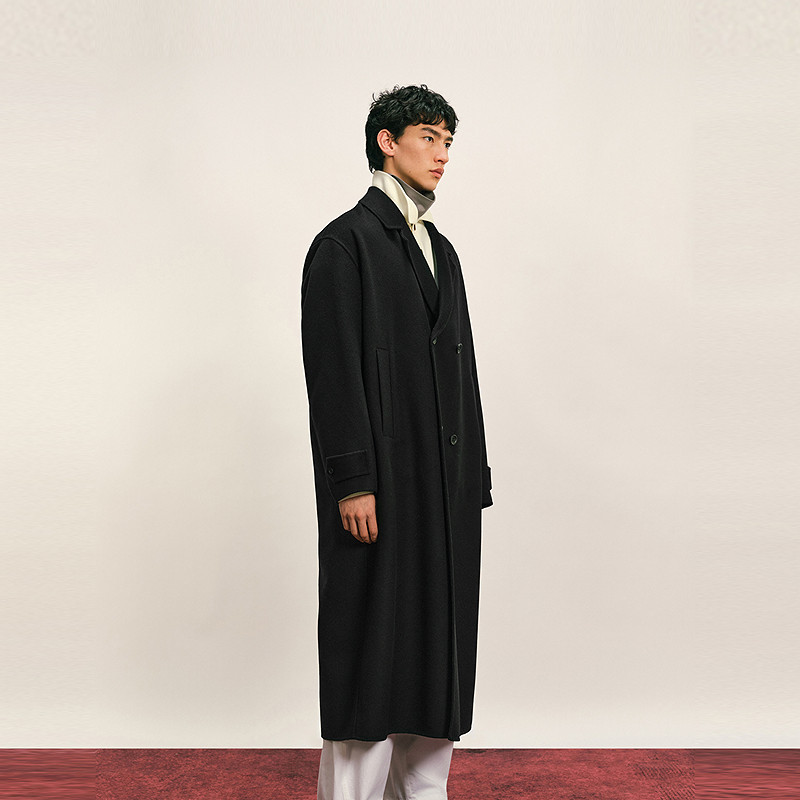 羊毛羊绒混纺面料,双排扣+加长的设计