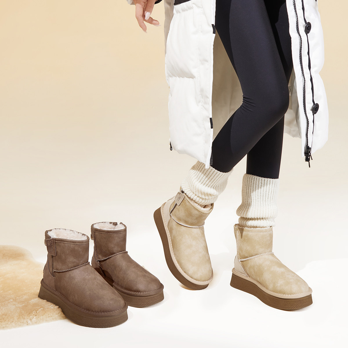 内增高~桑坡真皮厚底羊毛雪地靴女加绒保暖东北棉靴秋冬季短筒靴