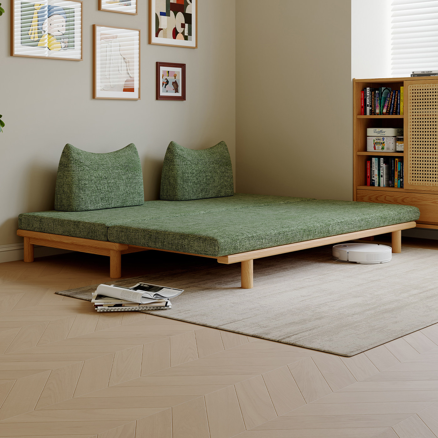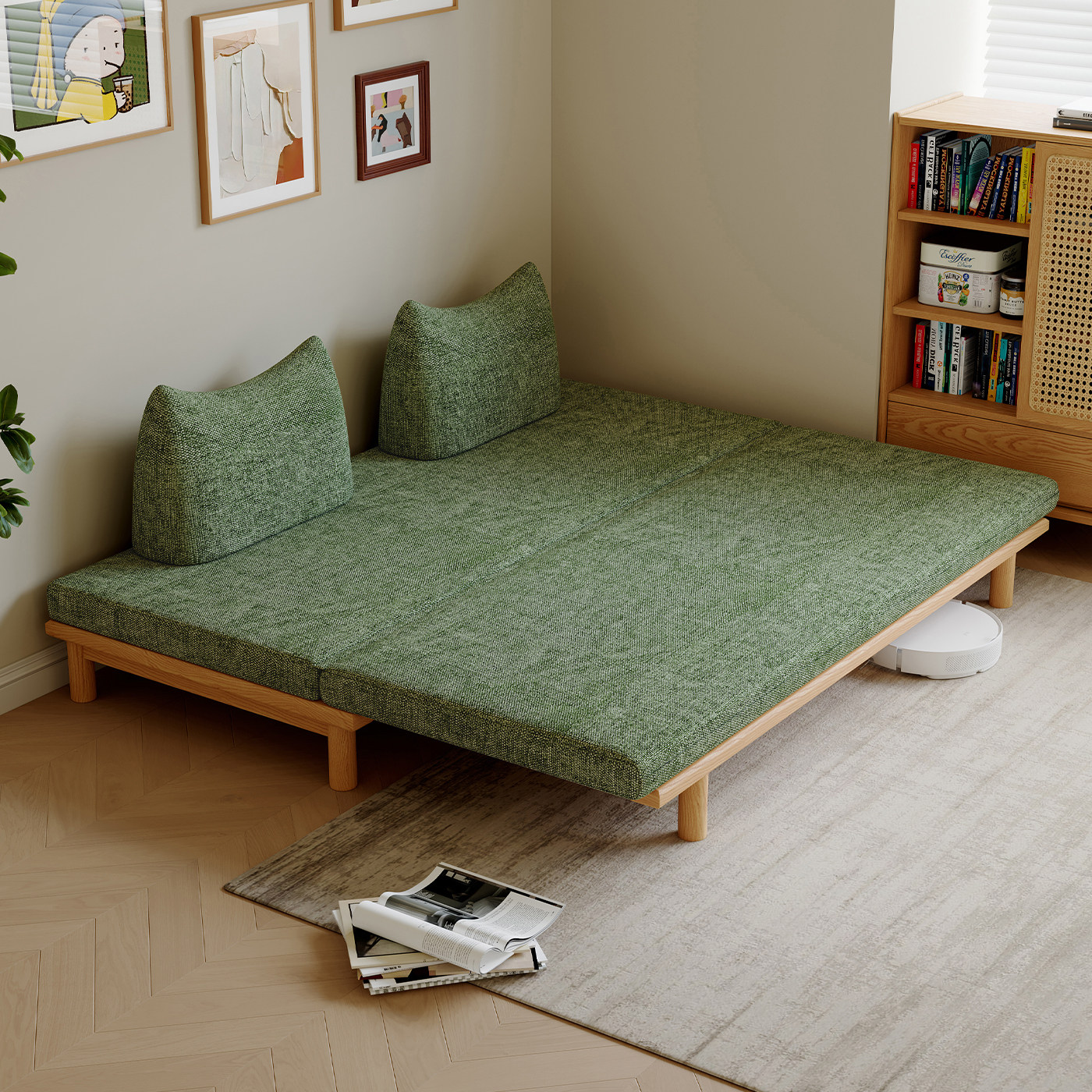 司朴可伸缩折叠两用沙发床小户型中古风客厅可拆洗不倒翁布艺沙发