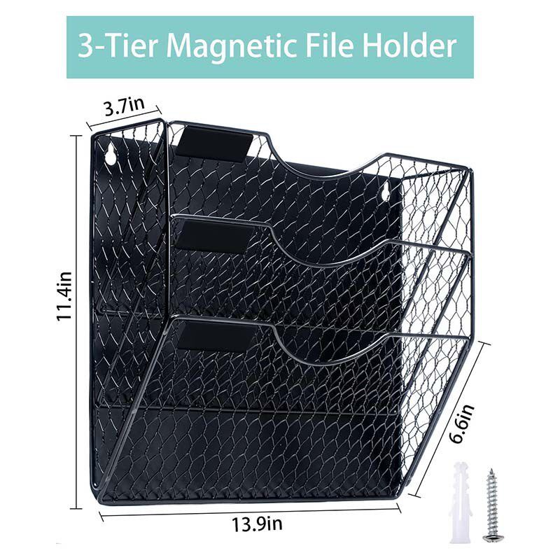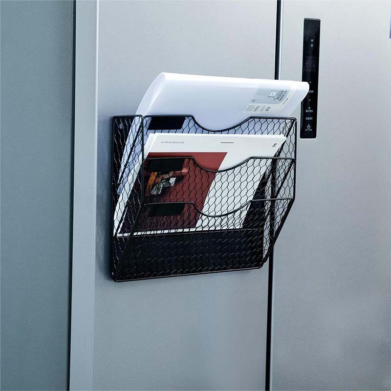 磁吸式铁艺文e件架三层斜底款强磁墙上A4文件框铁质网状办公收纳