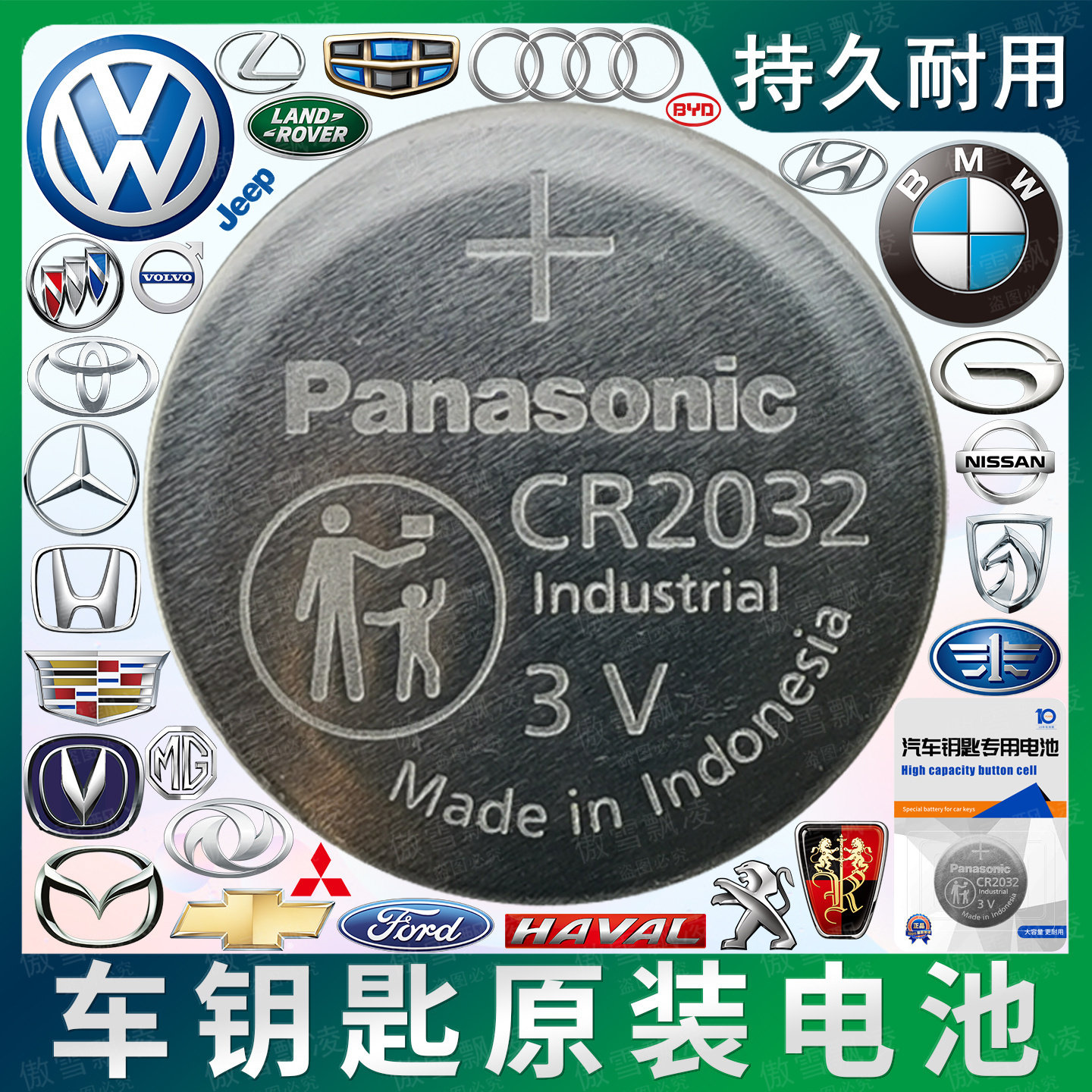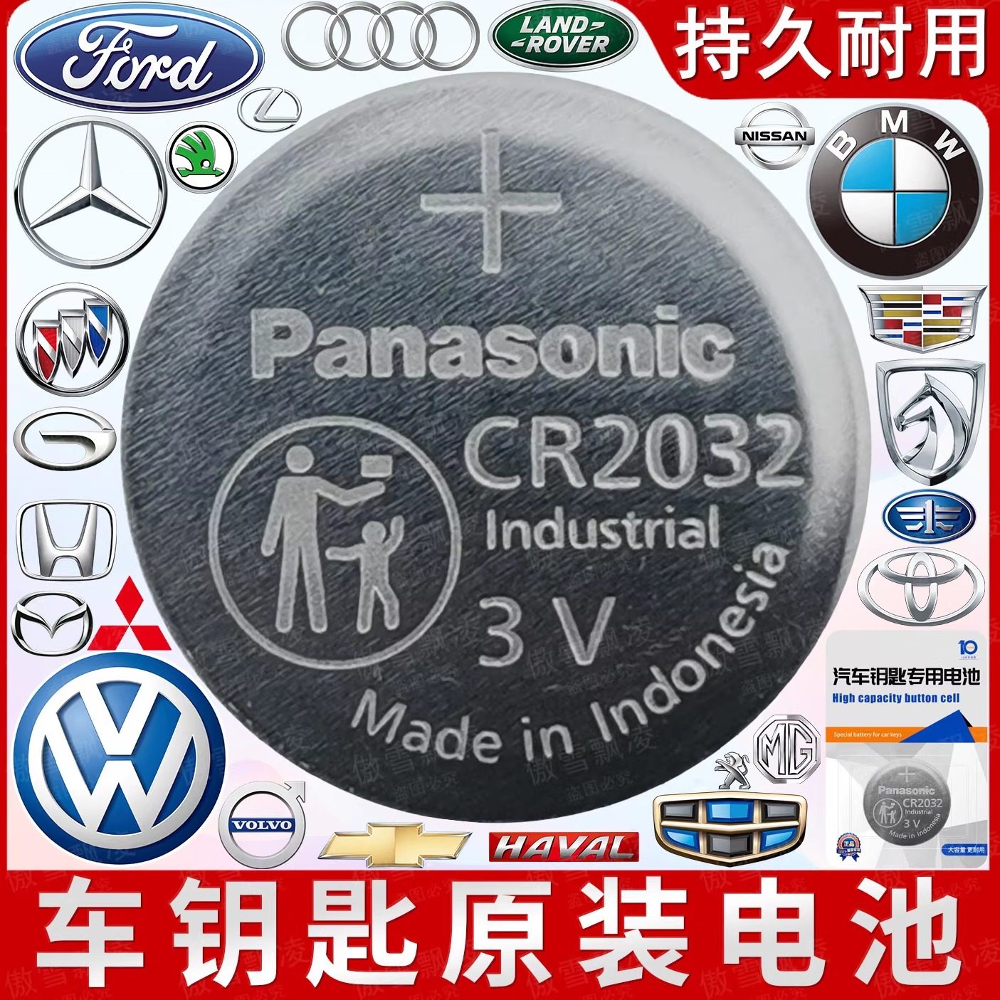原装进口松下CR2032/CR2450 /CR1632/CR20253v纽扣电池汽车钥匙遥控器型锂电池电子适用于奥迪大众奔驰宝马等