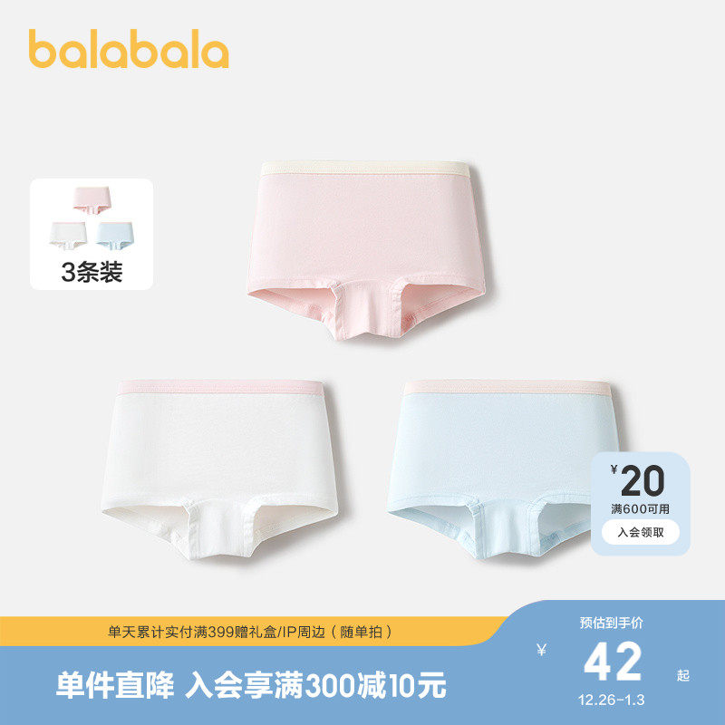 巴拉巴拉宝宝内裤平角女童四角短裤小童儿童柔软弹力不夹PP三条装
