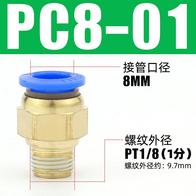 气管快速接头PC8k-02外螺纹外丝直通快插快接6-M5气动元件配件大