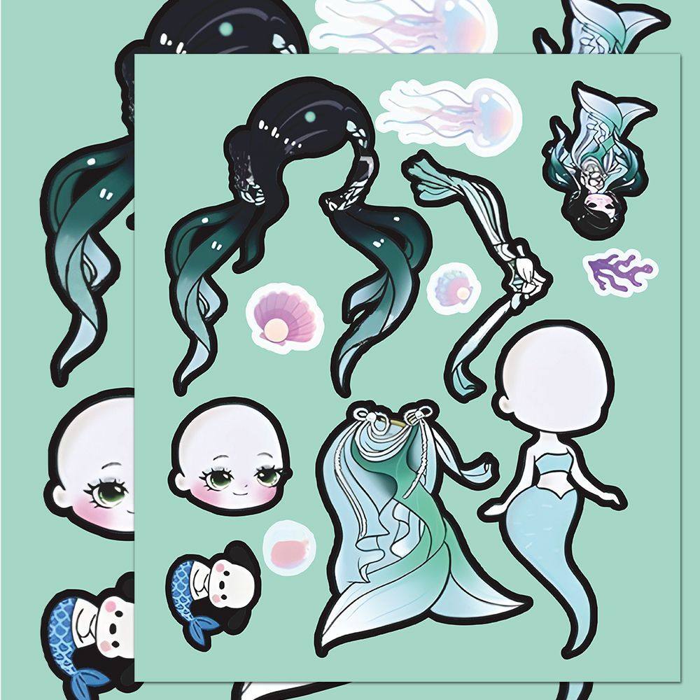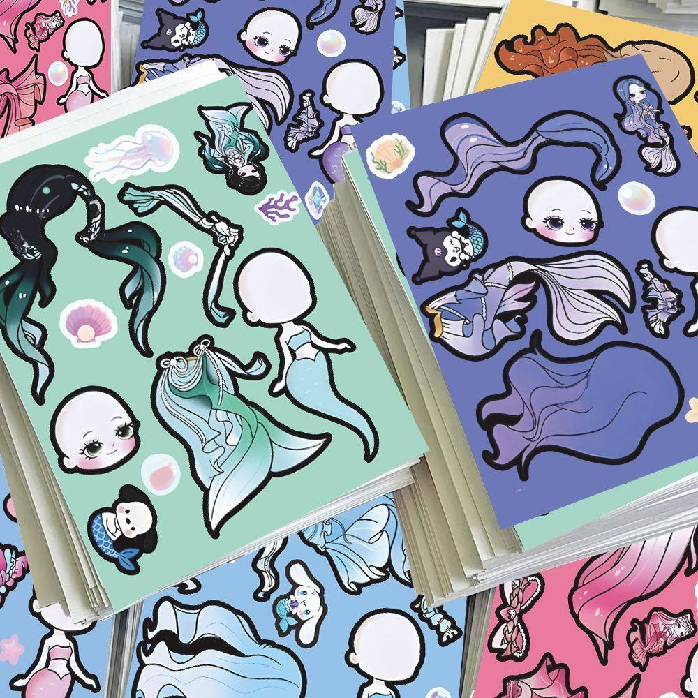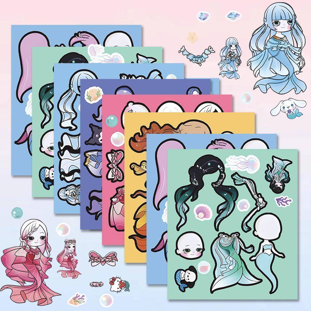 大张萌可美人鱼精美创意换装贴纸少女心儿童益智趣味手工DIY贴画
