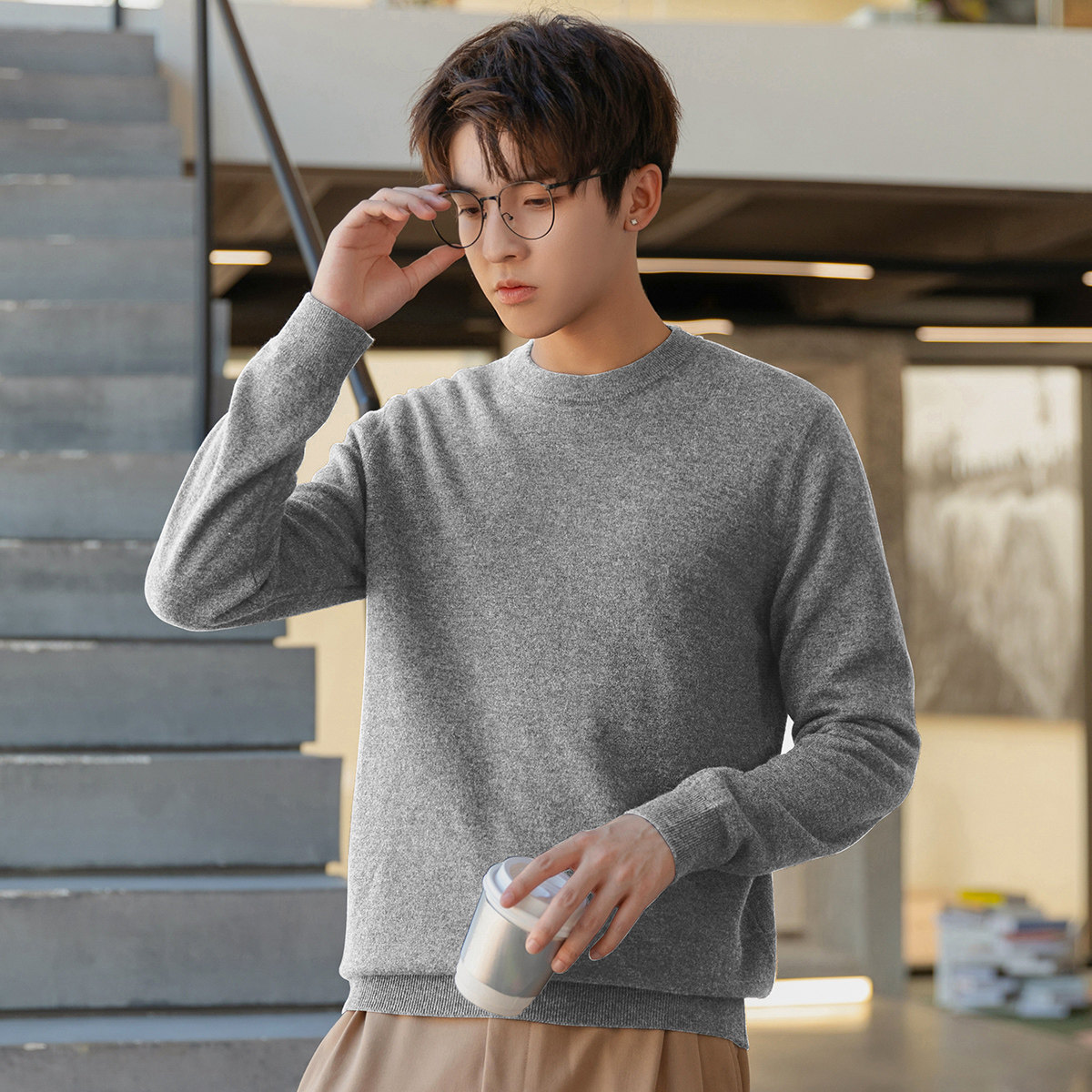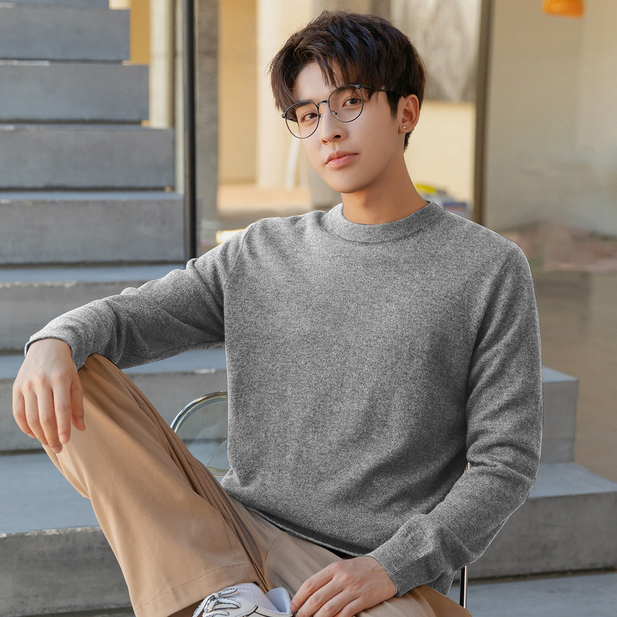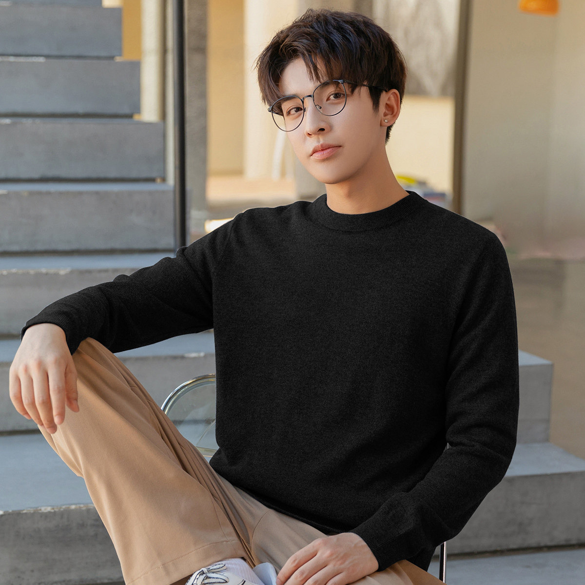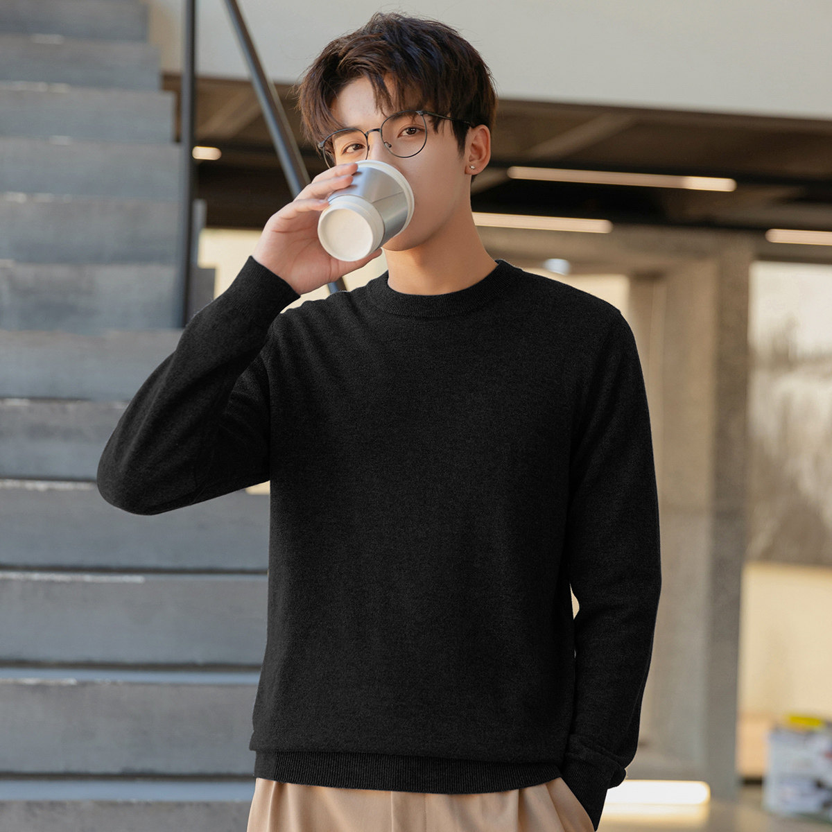 唐狮打底衫男毛衣冬季新款纯色百搭内搭日系上衣黑色针织衫学生潮