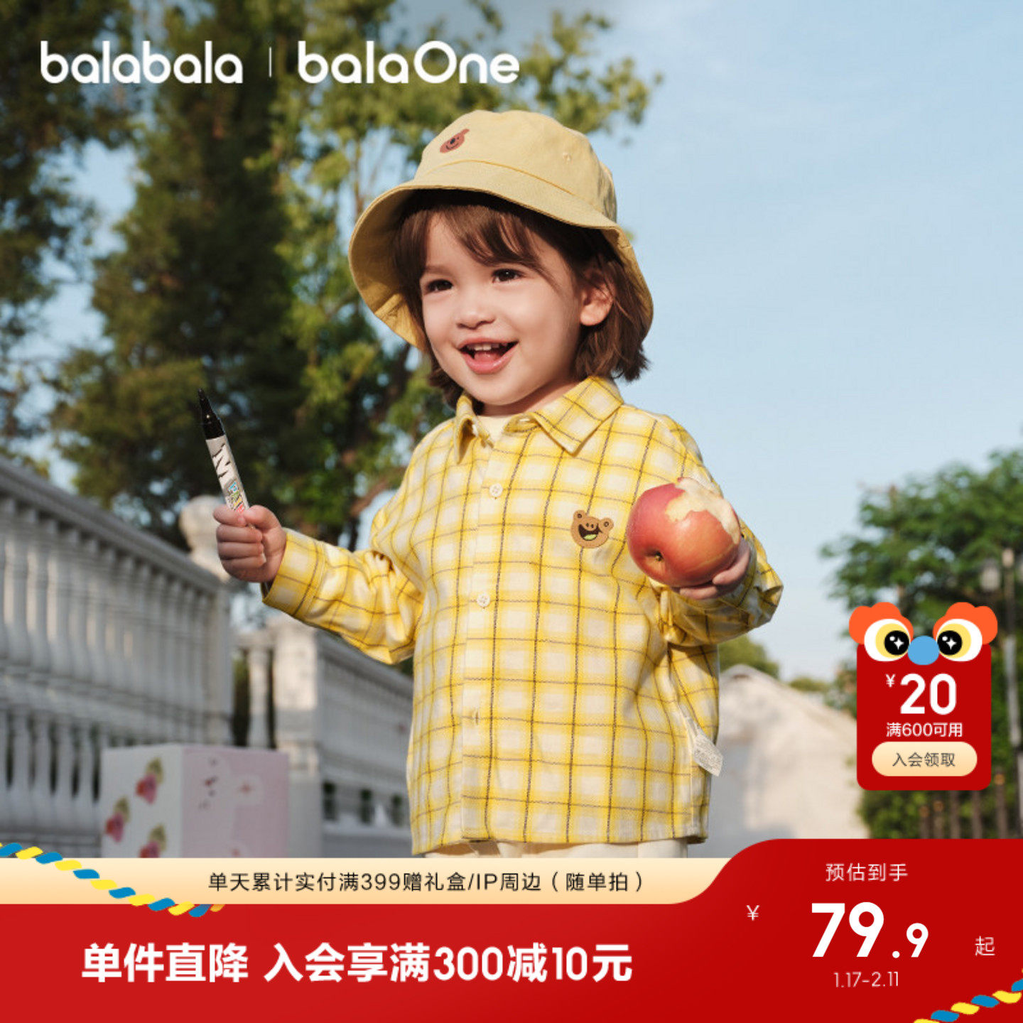 巴拉巴拉童装儿童长袖衬衫男童上衣女童打底衫2025秋冬装运动休闲