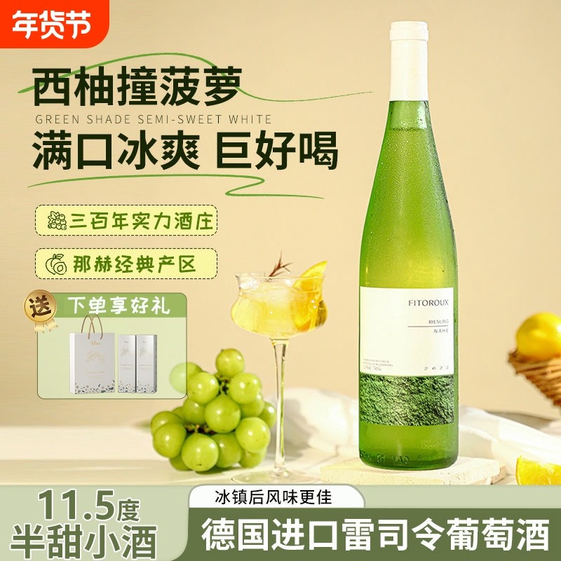 德国进口雷司令半甜白葡萄酒干白女生微醺甜酒原酒礼盒装甜型酒庄