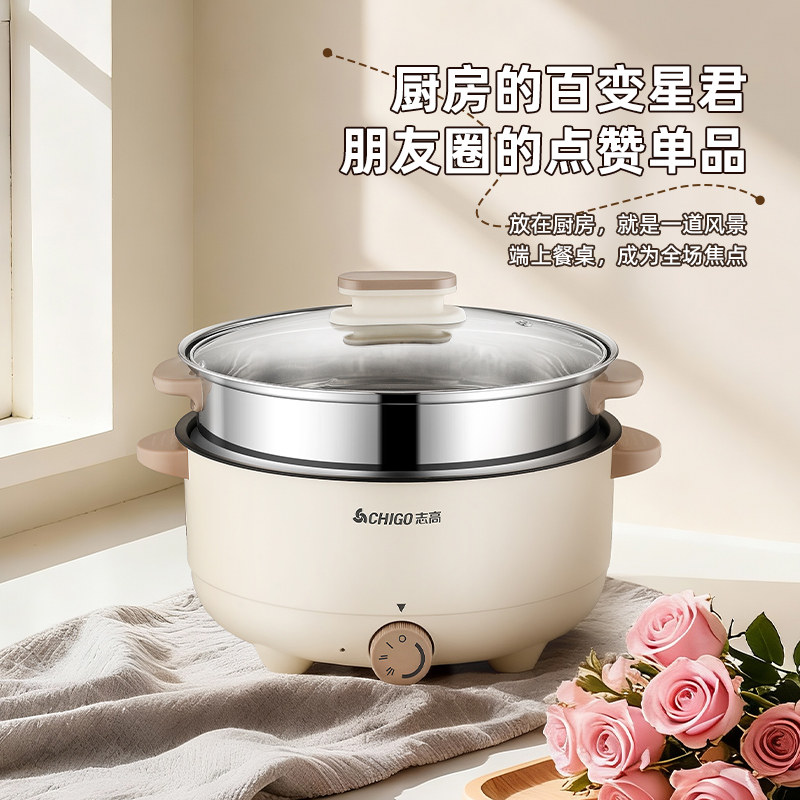 志高电煮锅多功能宿舍学生锅家用小型电热火锅泡面蒸煮煎炒一体锅