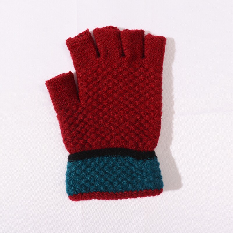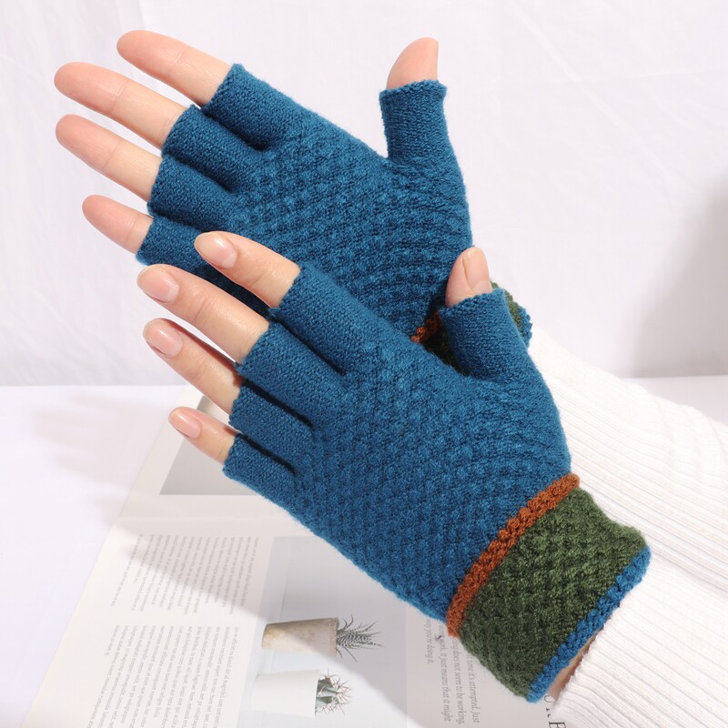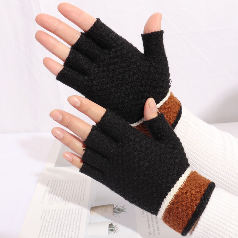 新款半指手套男女款韩版保暖针织学生作业办公加厚单层露指手套冬