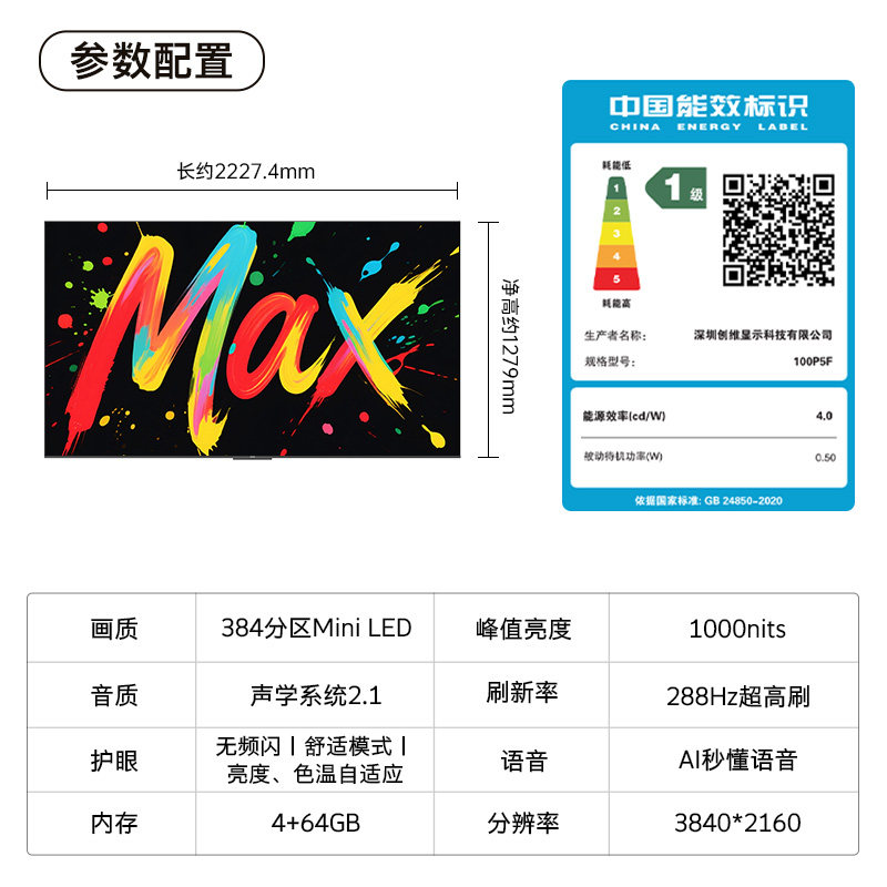 酷开 创维电视 M100英寸限定版MiniLED液晶屏家用新款100寸电视机