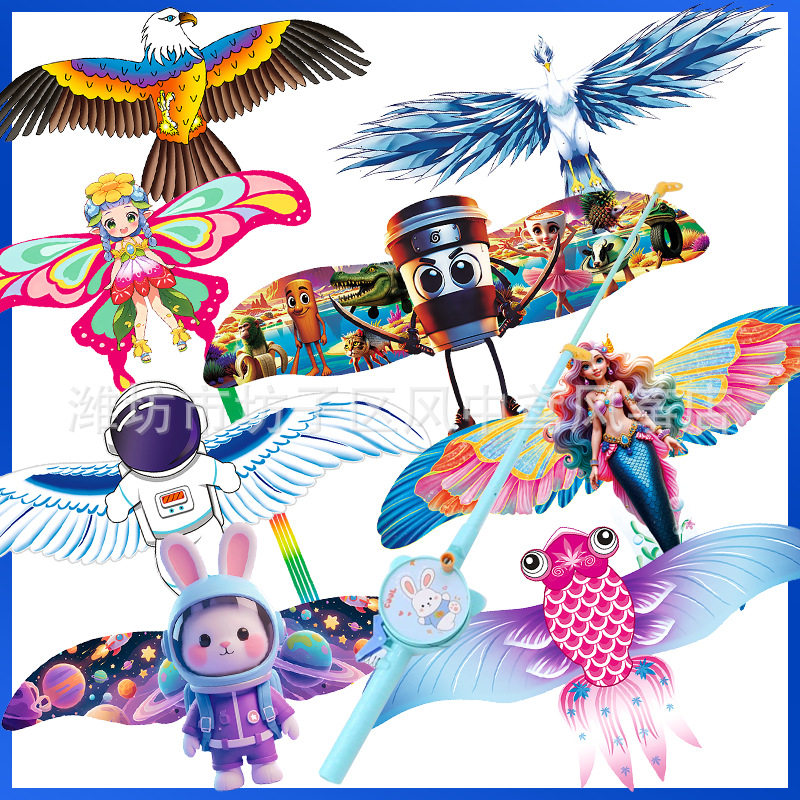 新款鱼竿风筝儿童手持动态迷你燕子蝴蝶小风筝厂家公园地摊
