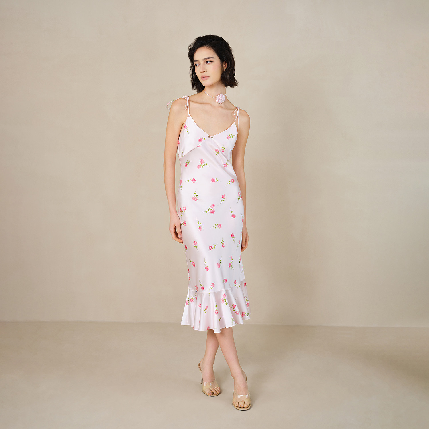 SILKY MIRACLE真丝睡裙吊带性感London Rose玫瑰印花桑蚕丝鱼尾裙