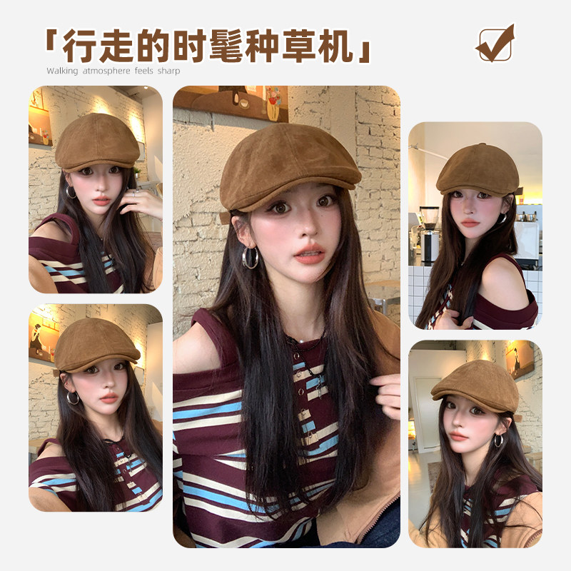 前进帽女2025新款英伦复古贝雷帽大头围显脸小反戴鸭舌报童帽子男