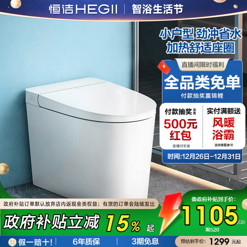 【精致小尺寸】恒洁轻半智能马桶座圈加热抗菌釉面坐便器家用520
