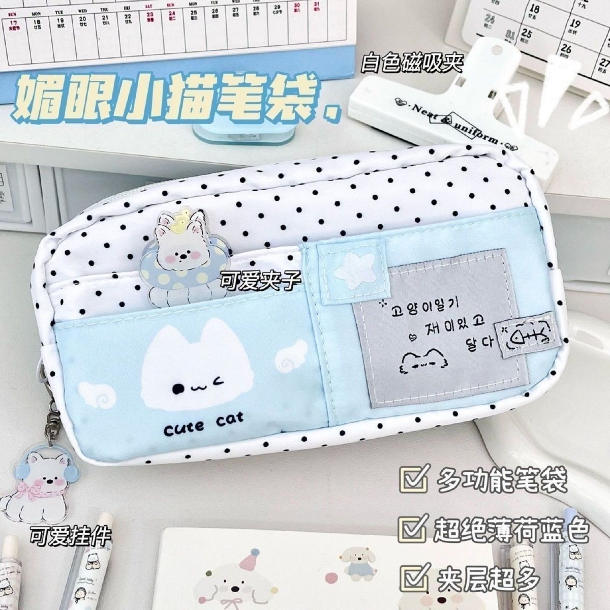 波点猫咪笔袋套装高颜值ins风文具盒小众不撞款多层大容量铅笔袋