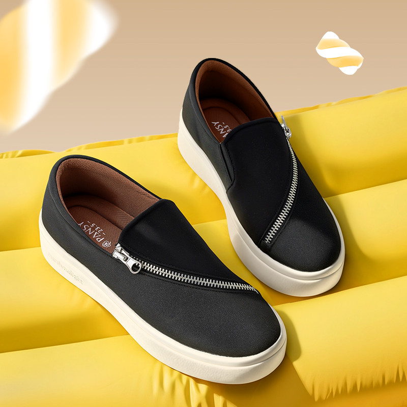Pansy盼喜日本女鞋超轻舒适一脚蹬厚底增高百搭乐福鞋2025新款