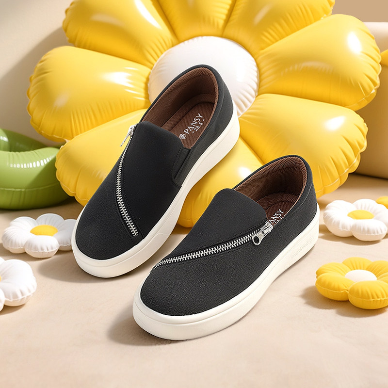 Pansy盼喜日本女鞋轻便舒适休闲帆船鞋一脚蹬厚底乐福鞋2025秋季