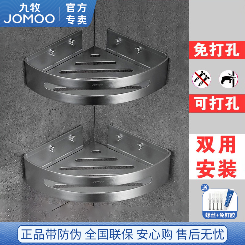 九牧卫生间置物架壁挂式浴室厕所洗手间淋浴房免打孔墙角三角收纳