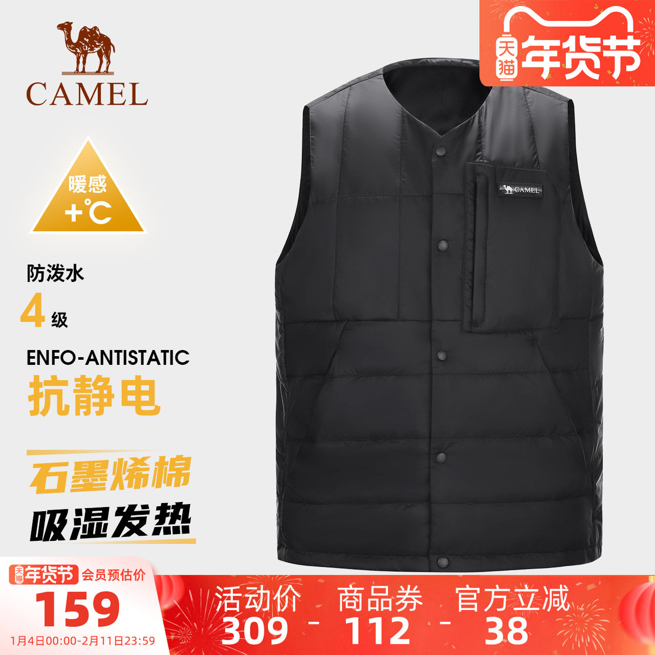 【石墨烯】骆驼男装背心山系男女防泼水保暖抗静电夹棉马甲外套