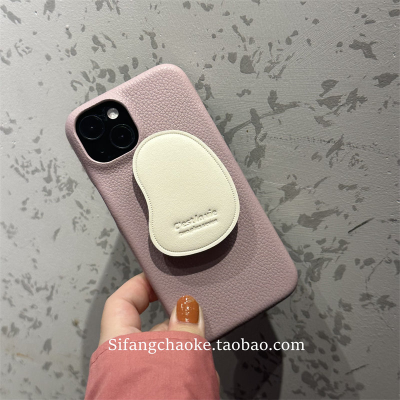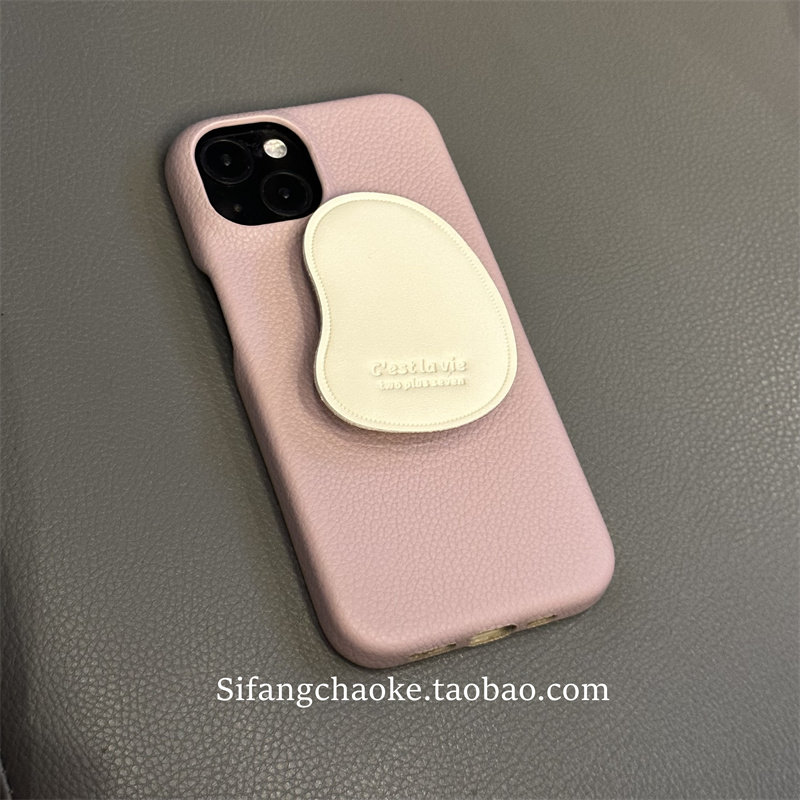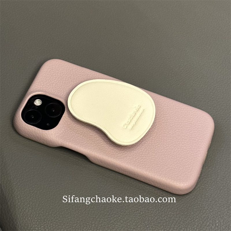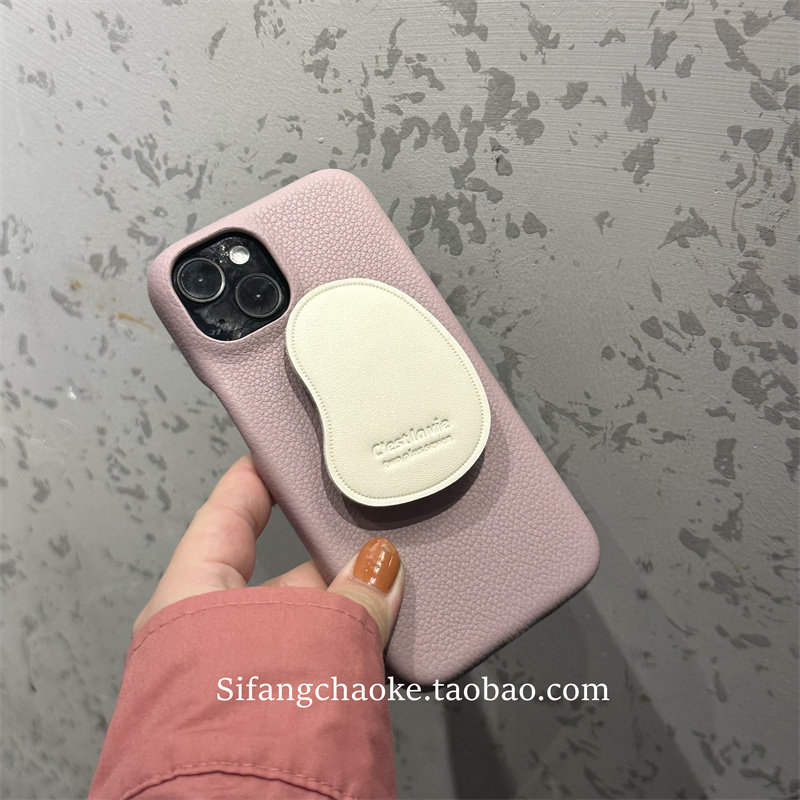 藕粉色皮质支架奶白马蹄适用iphone15Promax手机壳12/13promax简约12promax苹果11防摔壳