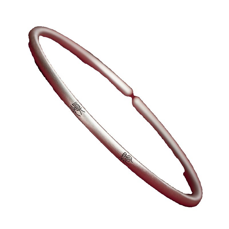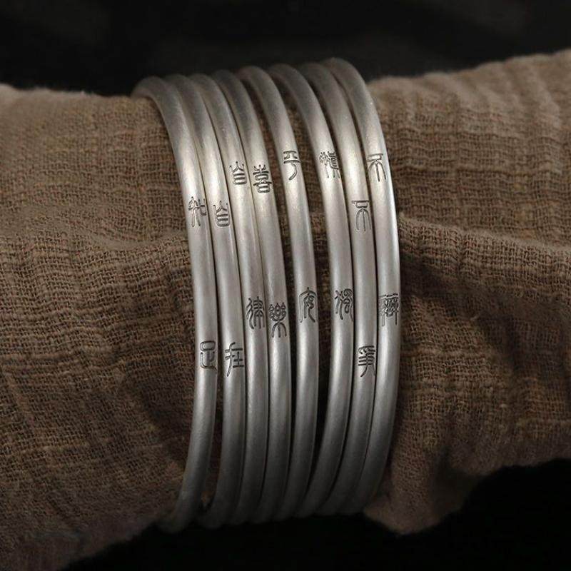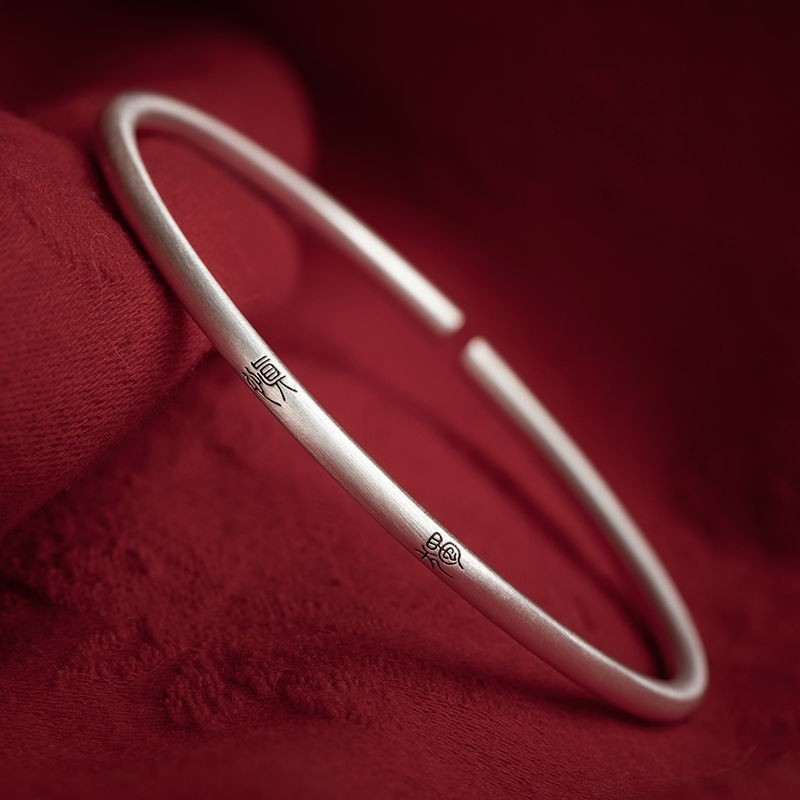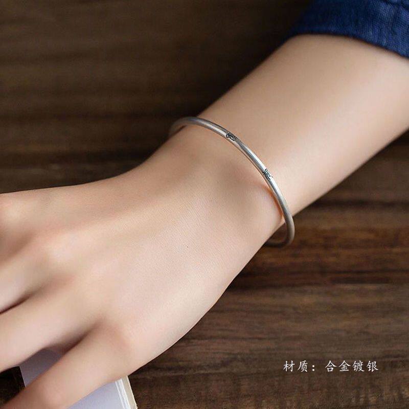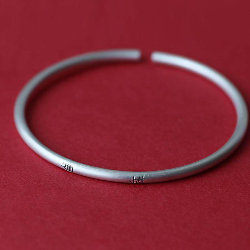 中国风细君子慎独刻字手镯女款小篆文字男女实心开口素银闺蜜手环