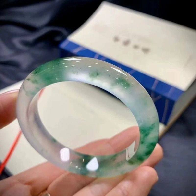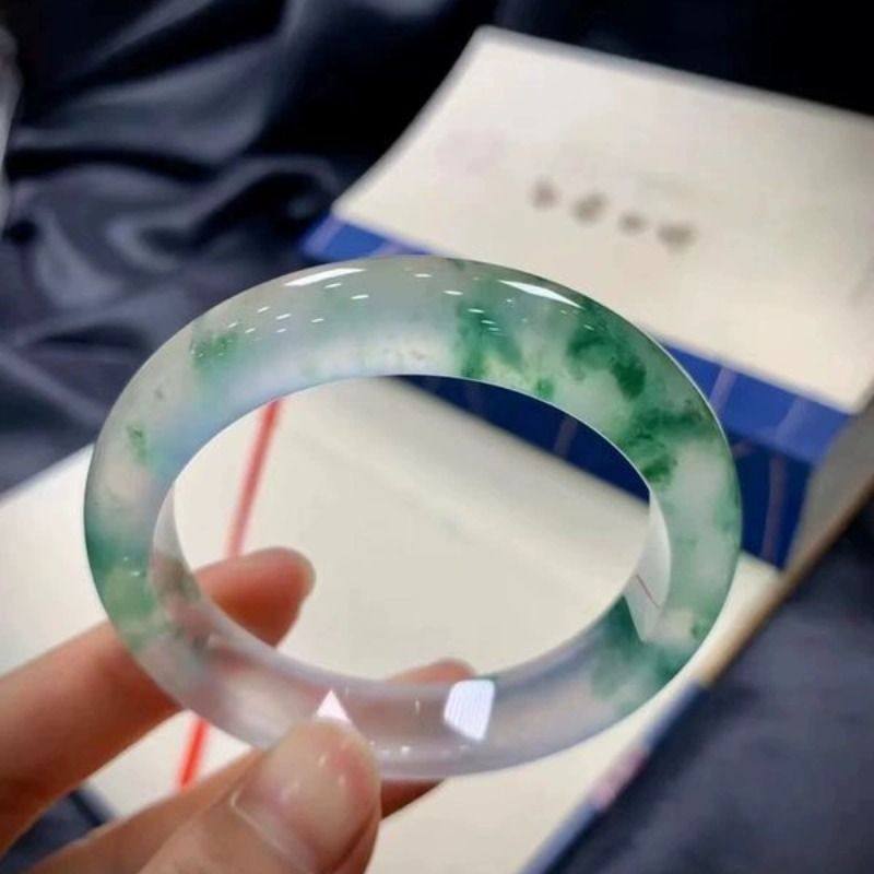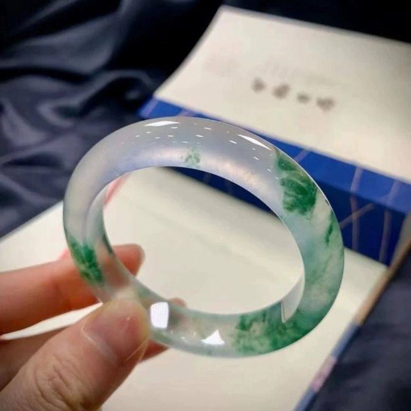 新款独龙玉手镯冰飘蓝花女士手镯仿翡翠色平替高冰飘花冰种玉手镯
