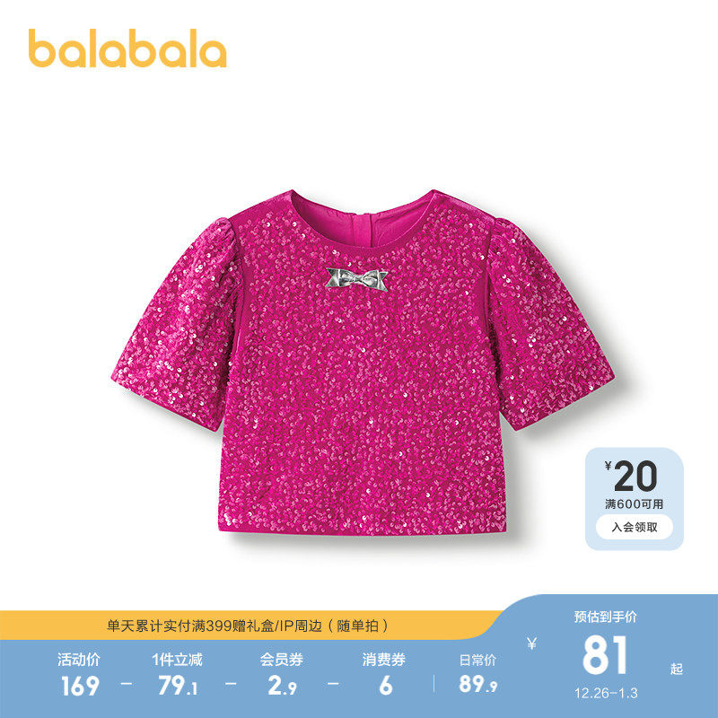 【ARtE PURA联名】巴拉巴拉女童衬衫儿童短袖2025新款秋短款上衣