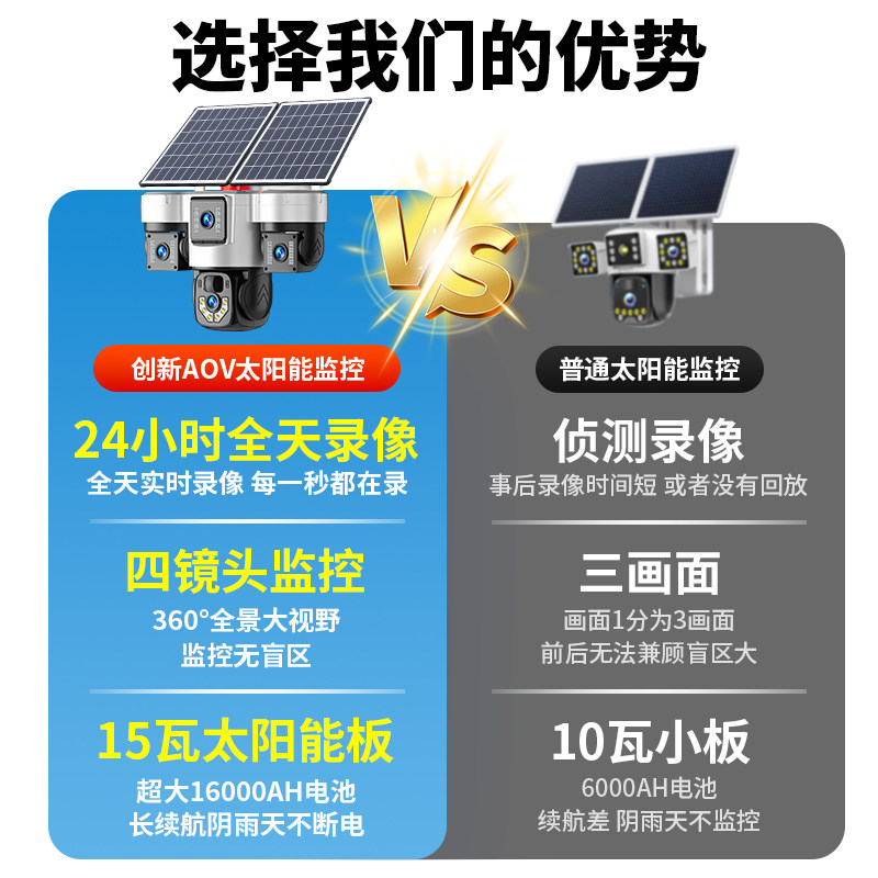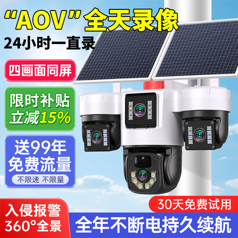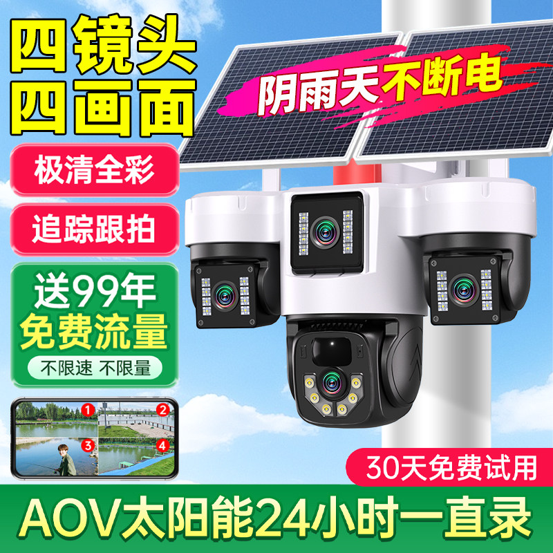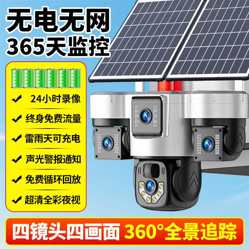 太阳能摄像头360度无死角手机远程家用无电无网室外摄影头监控器