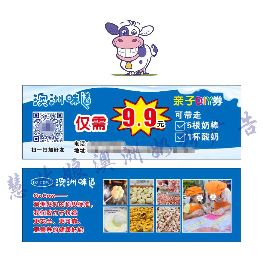 澳洲牛奶9.9元酸奶卡片长款 美食体验福利地推宣传金可澳牛奶名片