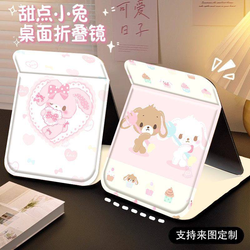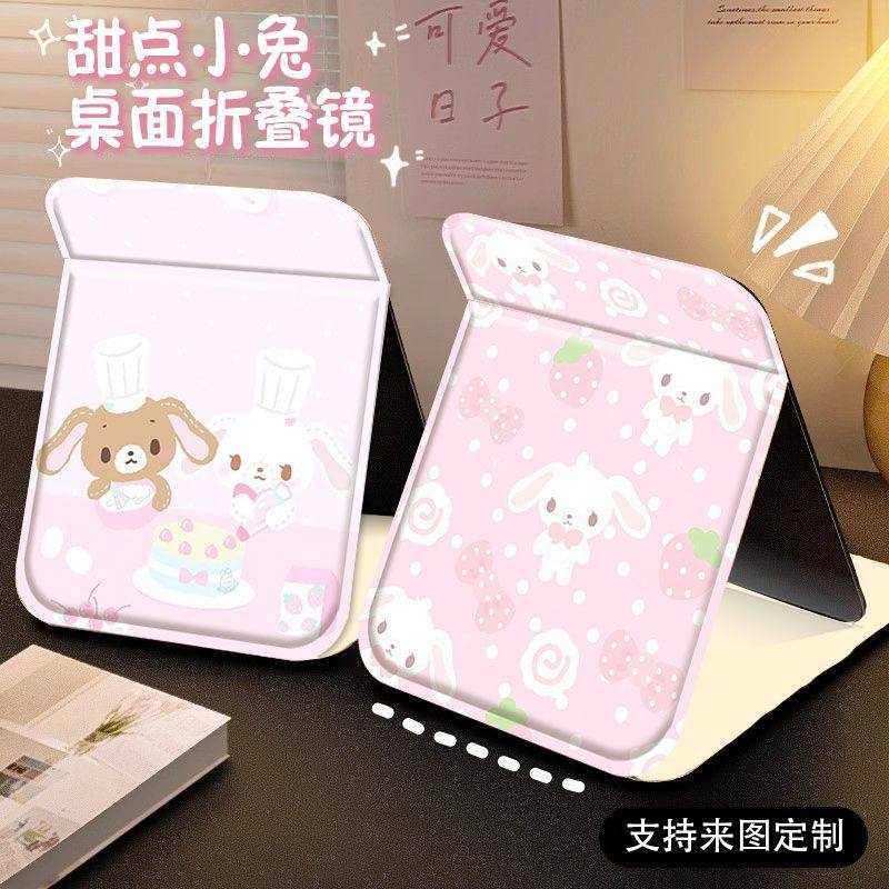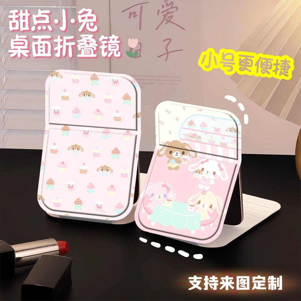 甜品兔可爱折叠化妆镜子收纳学生便携式宿舍桌面用台式随身梳妆镜