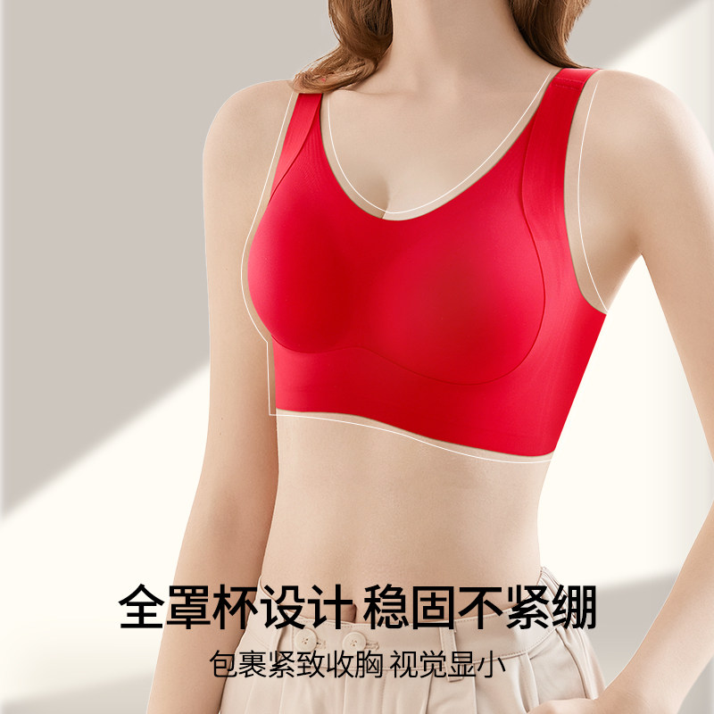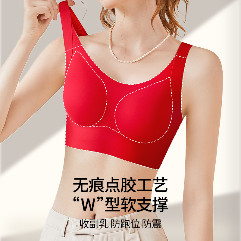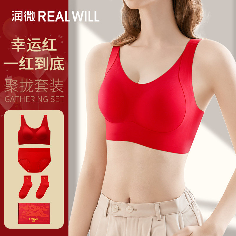 润微大胸调整型收副乳本命年红色内衣礼盒大码提拉上托防下垂文胸