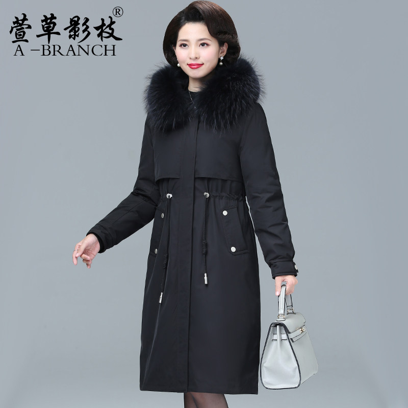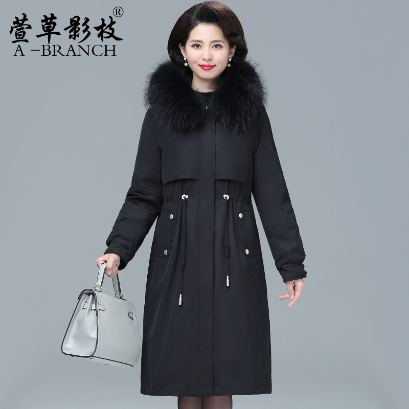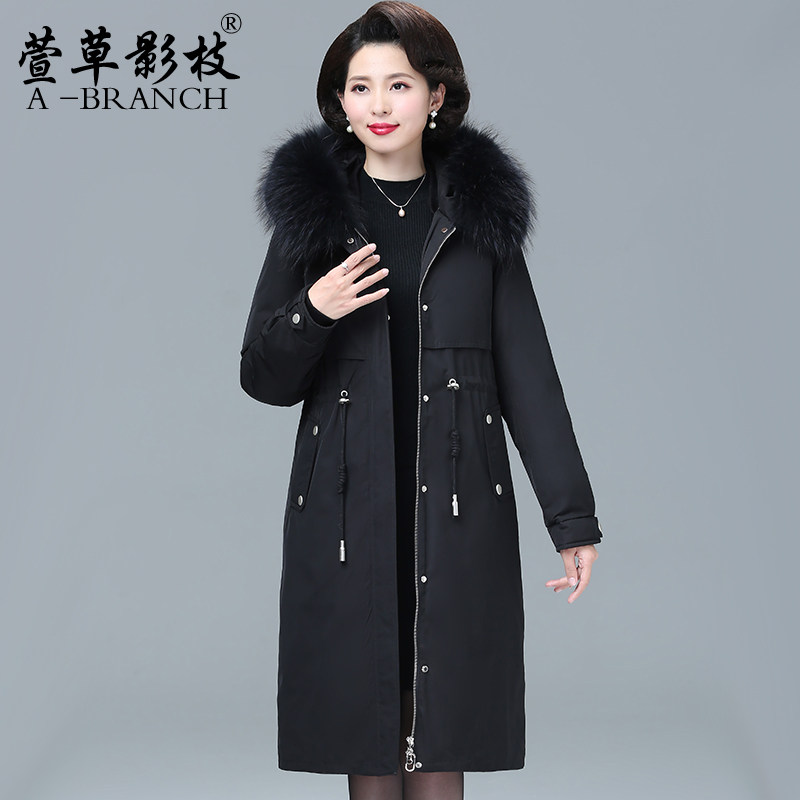 品牌妈妈冬装派克羽绒服女长款过膝洋气加厚中老年秋冬贵夫人外套