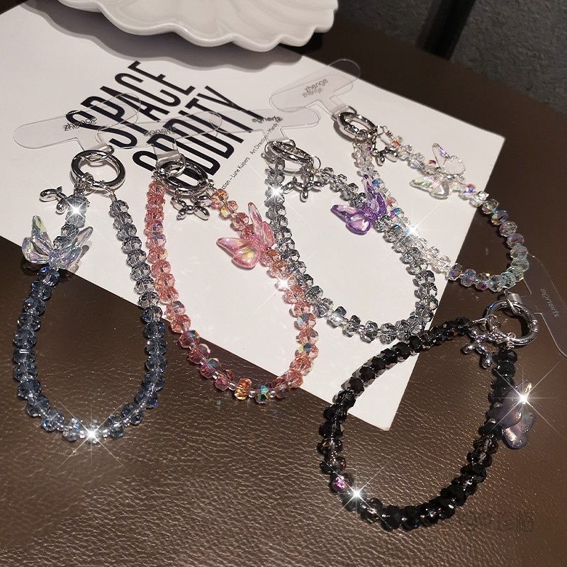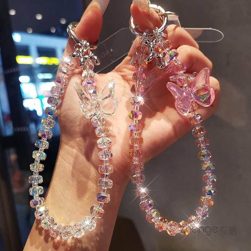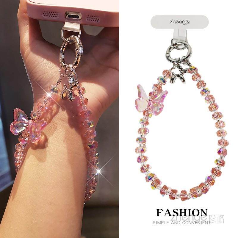 双域小清新水晶蝴蝶方糖手机挂绳ins轻奢高端精美手机保护壳挂件