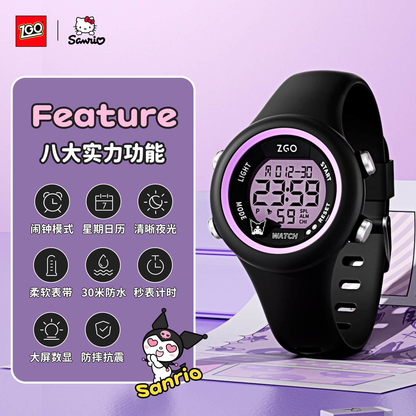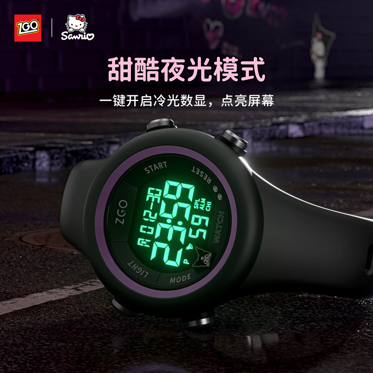 正港ZGOx三丽鸥联名手表儿童女孩初中小学生看时间防水女款电子表