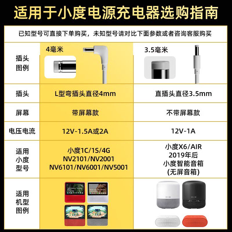 原装小度充电器线电源适配器小度在家1C1S/X8X6电源线通用小度充电线器智能音箱智能屏充电线专用弯头12V1.5A