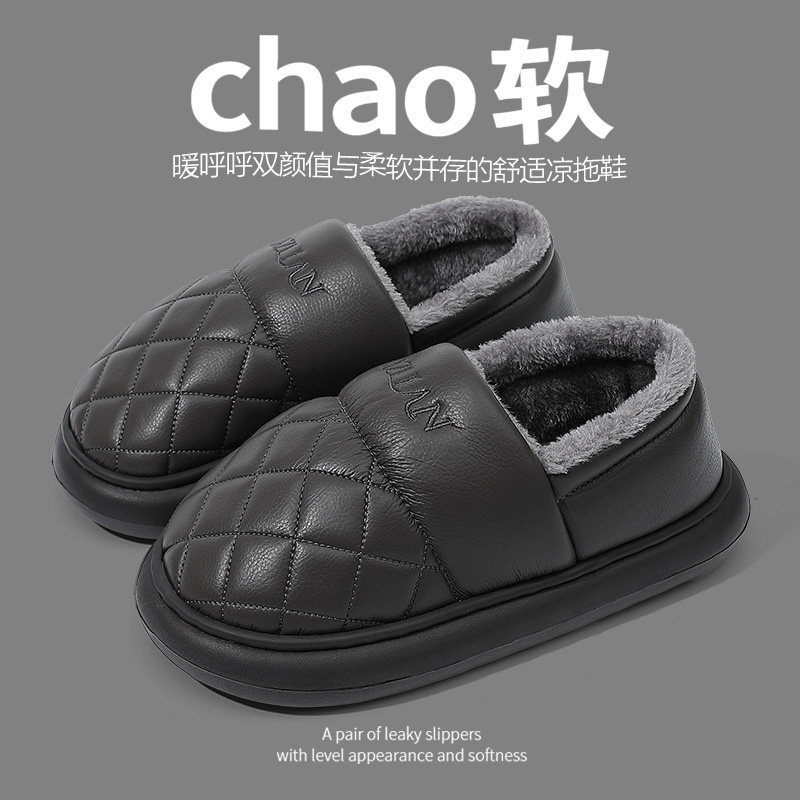 朴西棉拖鞋女士秋冬季厚底简约保暖室内居家用软底防滑情侣棉拖男