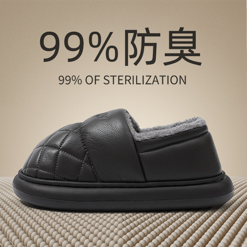 俞兆林老人棉拖鞋男冬季2025新款居家居包跟防水防滑男皮面棉鞋女