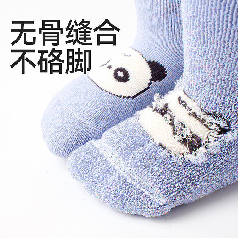 100%纯棉无骨小龙人婴儿毛圈袜冬季加厚防滑护膝地板袜宝宝全棉袜