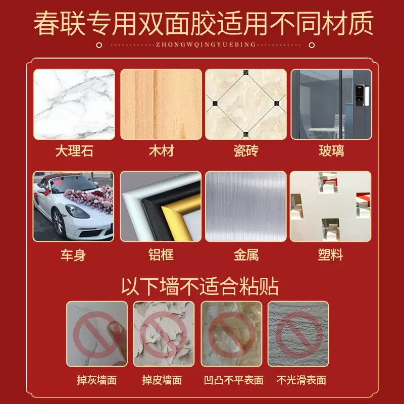 贴对联春联双面胶高粘性无痕粘贴胶婚车婚庆布置婚房双面纳米胶片