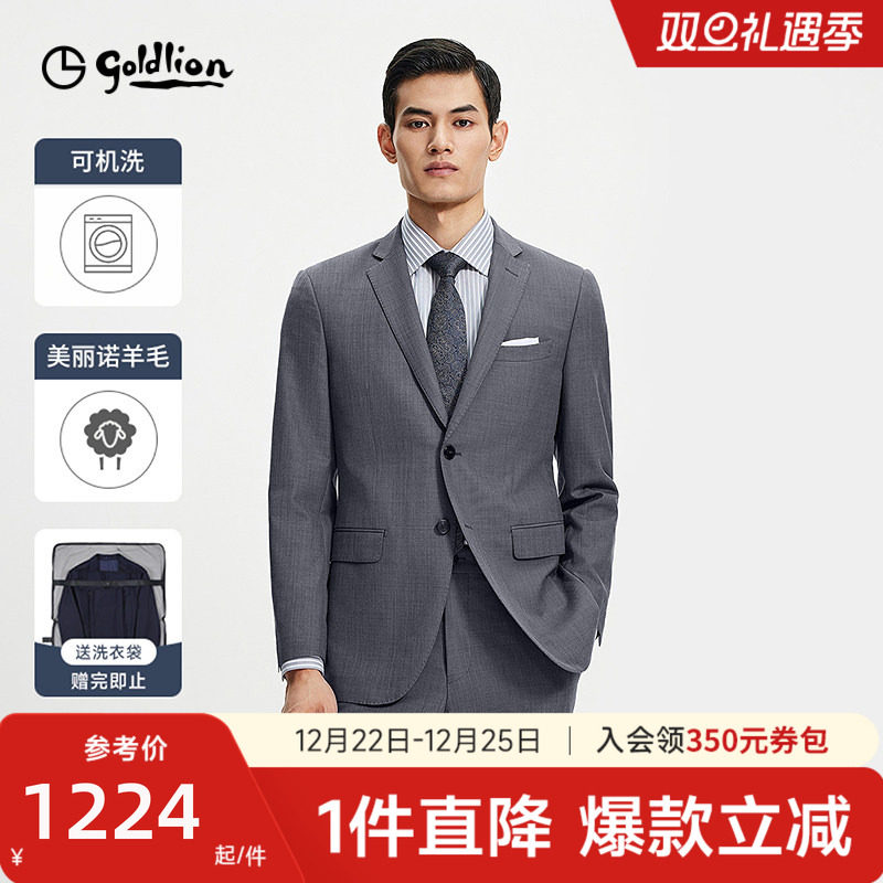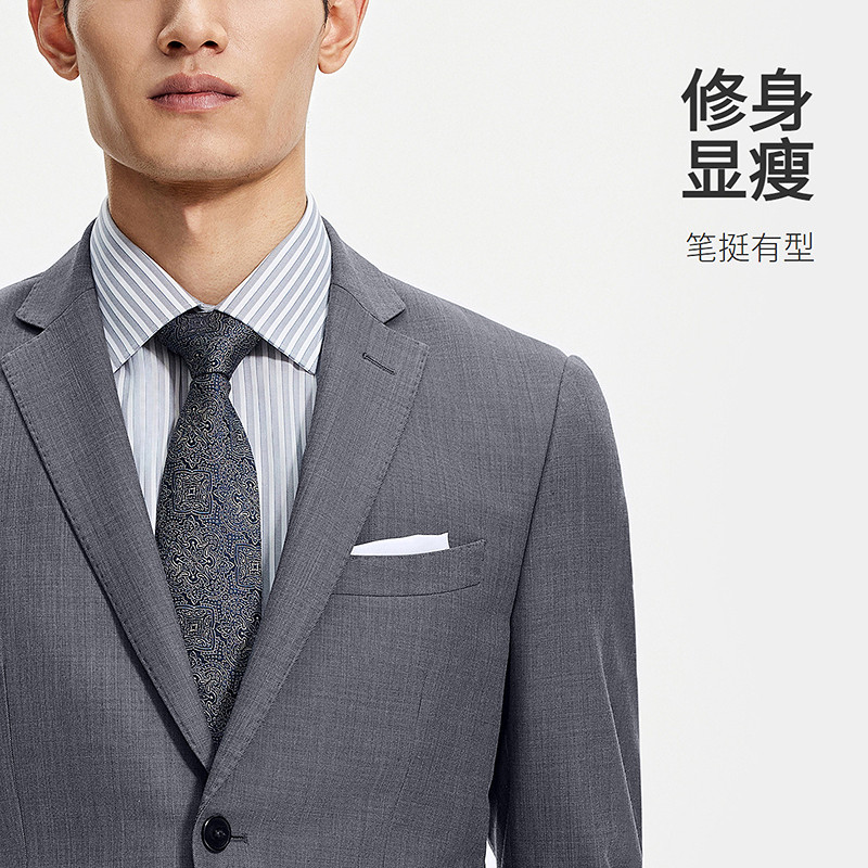 【可机洗羊毛】金利来25秋冬男士西装灰色花纱修身商务正装西服男