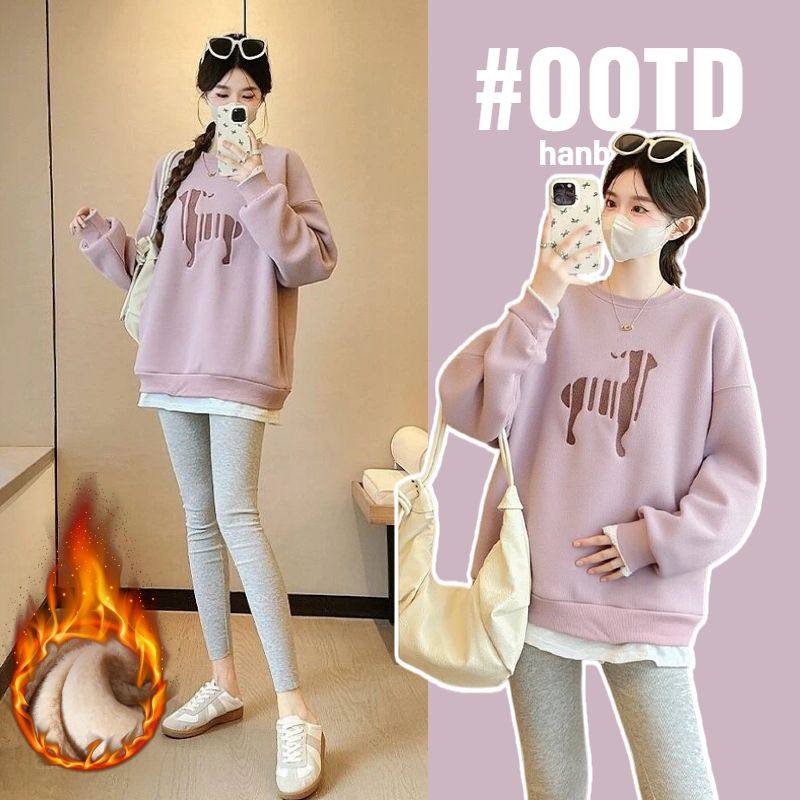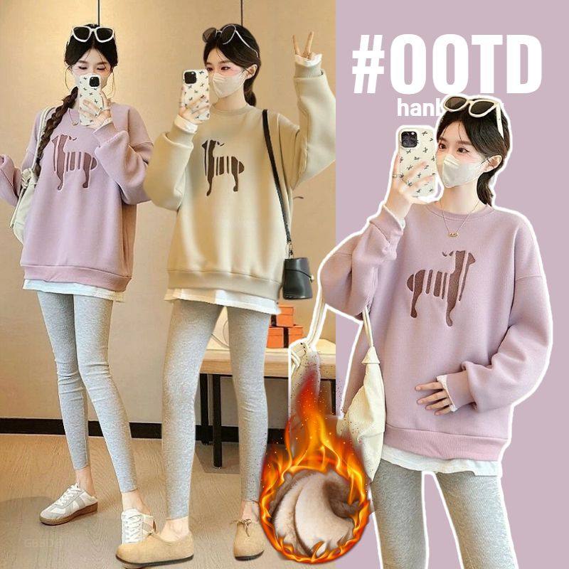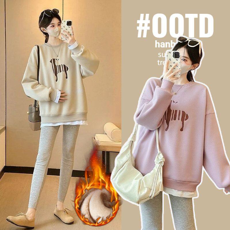 婧麒孕妇装冬装2025新款高级加绒套装孕期穿搭休闲时尚秋冬款上衣