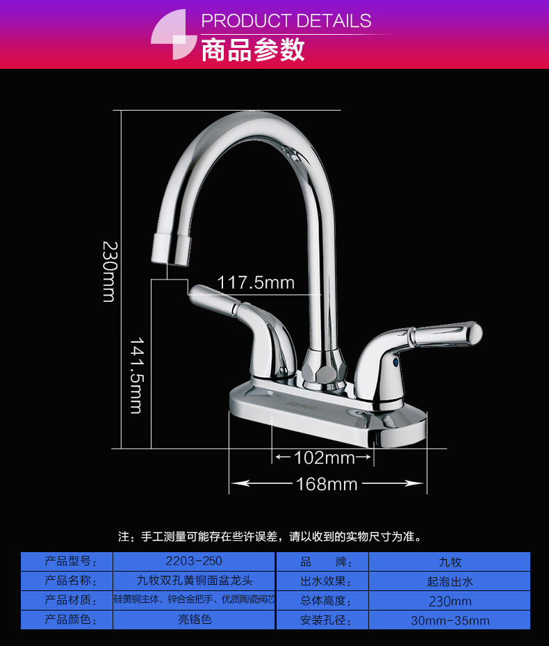 九牧双孔面盆水龙头冷热老式台盆洗脸手池卫生间洗漱台可旋转2203