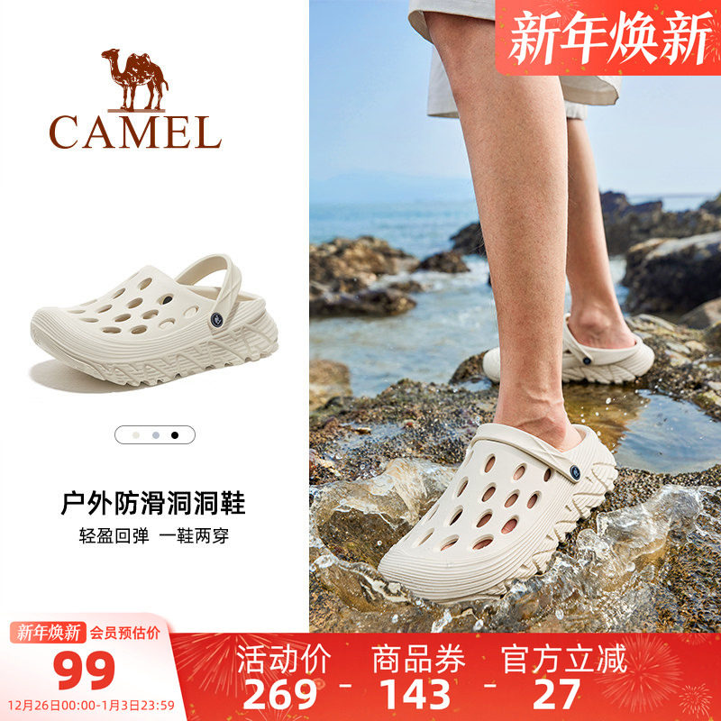 骆驼男鞋洞洞鞋夏季厚底防滑外穿女户外凉鞋包头沙滩鞋涉水拖鞋男
