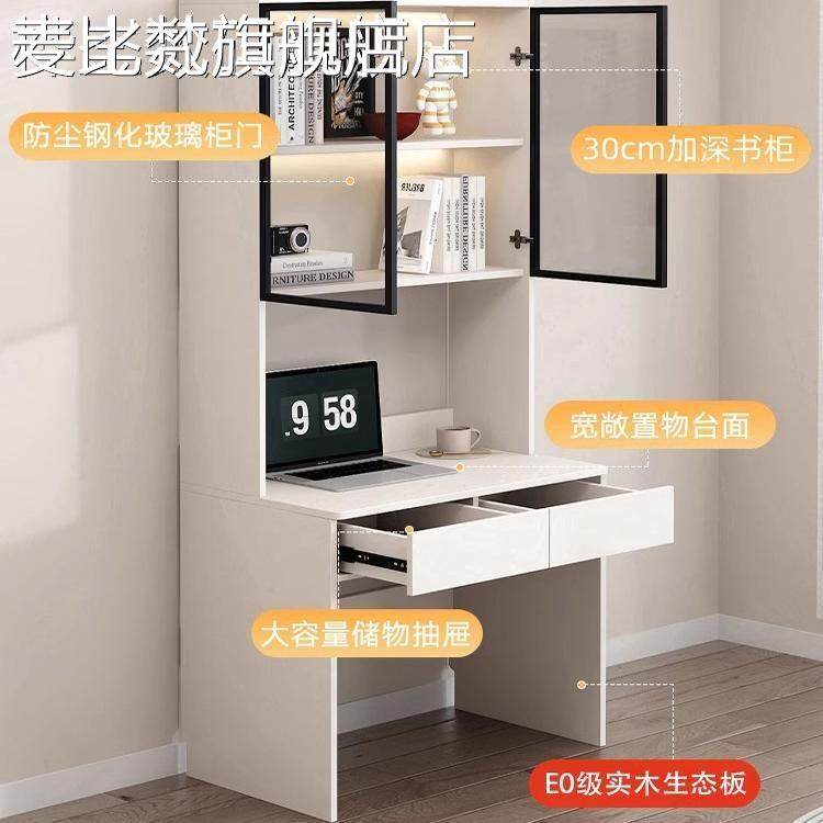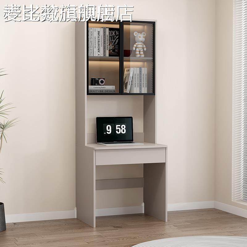 麦比梵小型家用实木电脑桌办公桌单人儿童卧室轻奢书桌书柜一体定制60cm摆件饰品床笠拉车