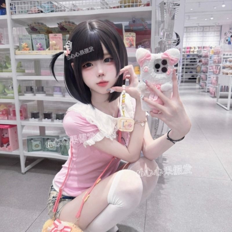 心心果家 软妹 30cm短直发 假发自然高温丝