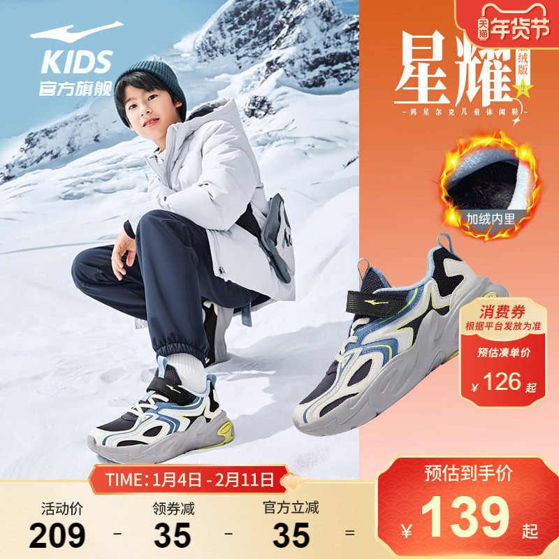 川尘3|鸿星尔克童鞋冬季加绒男中大童鞋子保暖加厚二棉休闲运动鞋