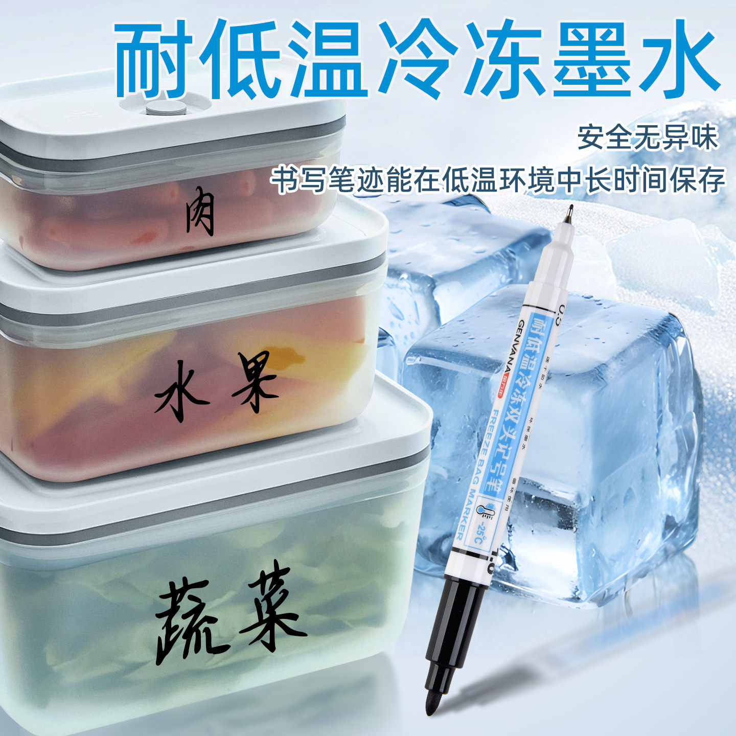 金万年耐低温冷冻记号笔储奶袋专用标记笔实验室小双头低温防水耐光防冻冰箱冷冻冷餐食品包装标签记号标记笔