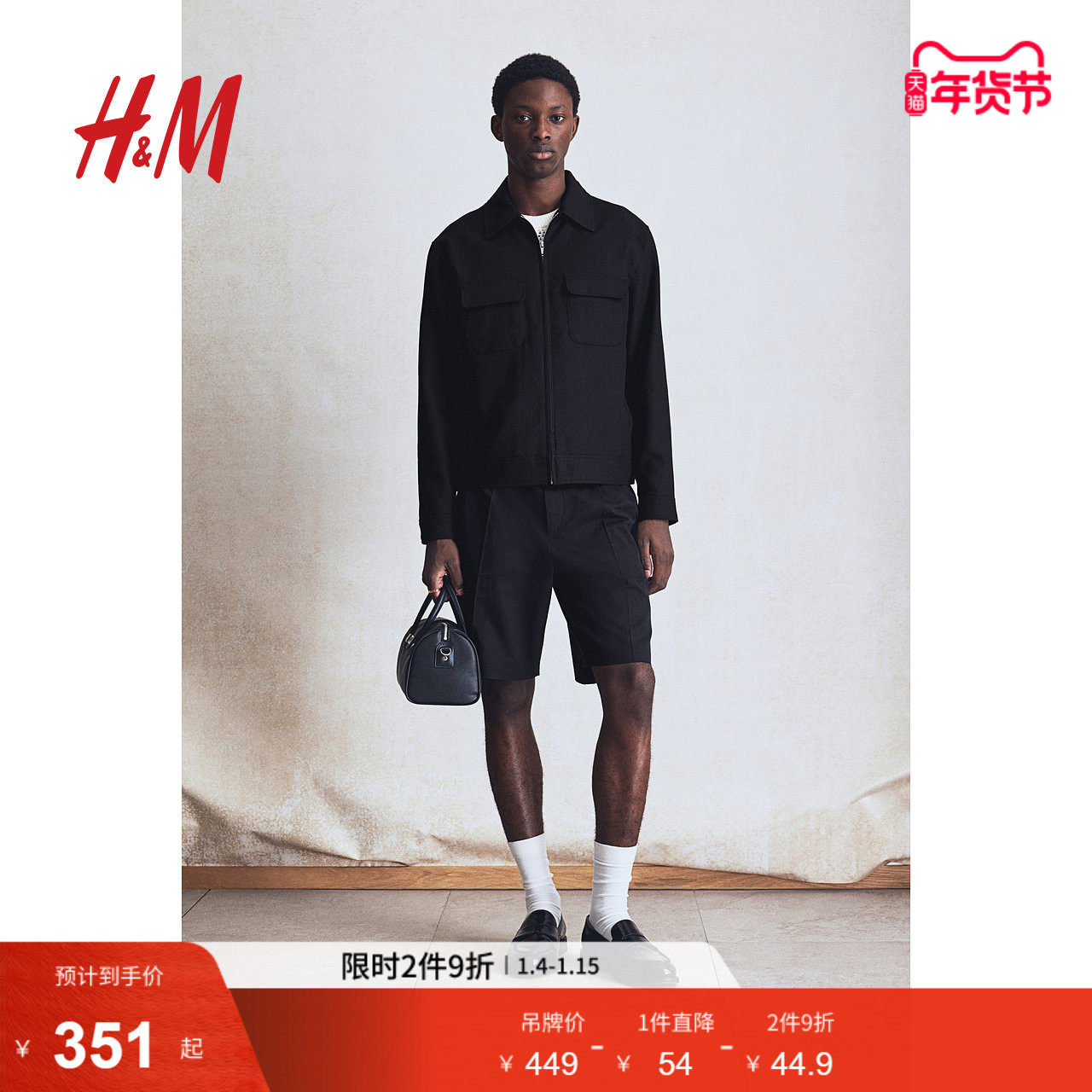 HM男装夹克冬季简约亚麻混纺cleanfit翻领夹克1262241