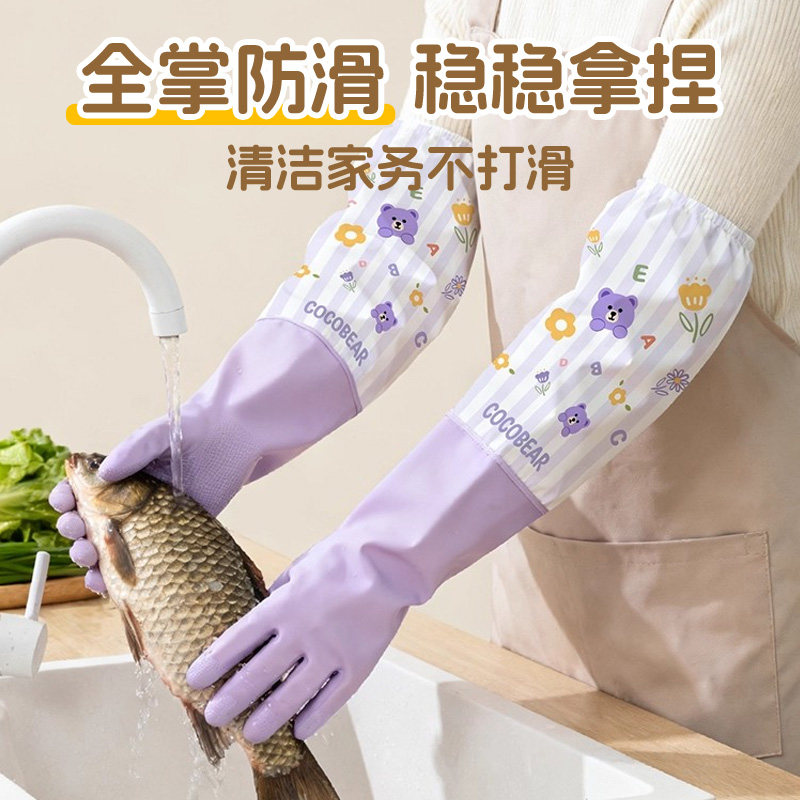 洗碗手套女加绒秋冬家务厨房耐用型防水橡胶皮洗衣服刷碗加厚加长